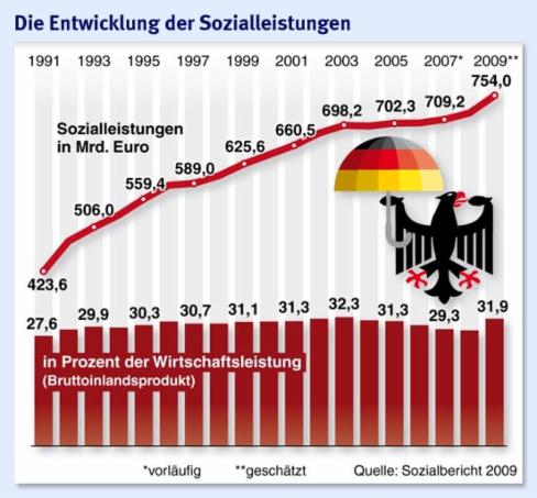 Die Sozialausgaben liegen also deutlich über den gesamtem Steuereinnahmen! |